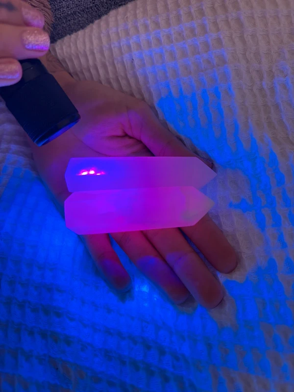pink mangano calcite which is UV reactive 😍 Price is for one 🩷